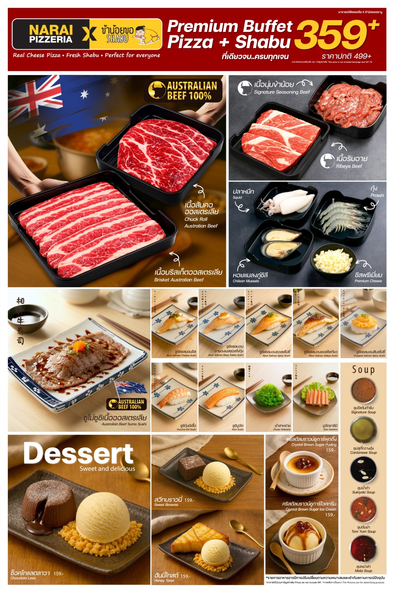 - ราคาผู้ใหญ่ 359+ เครื่องดื่มรีฟิล 39+ ภาษีมูลค่าเพิ่ม 7% ราคารวมสุทธิ 426 บาท/ท่าน